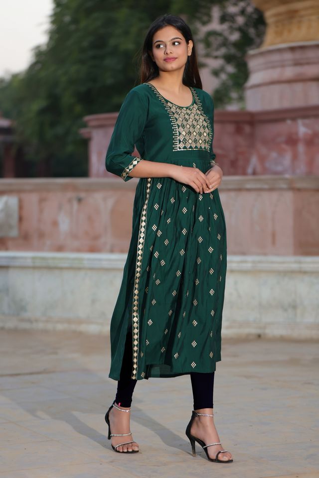This beautiful combination of kurta with eye catching light colors is perfect wear for women from the brand Filiate. This fabric offers lightweight feel and superior comfort. This kurta is comfortable to wear all day long. This set is stylish option for a nice family function or and event when teamed with matching jewelry and classic flats.
